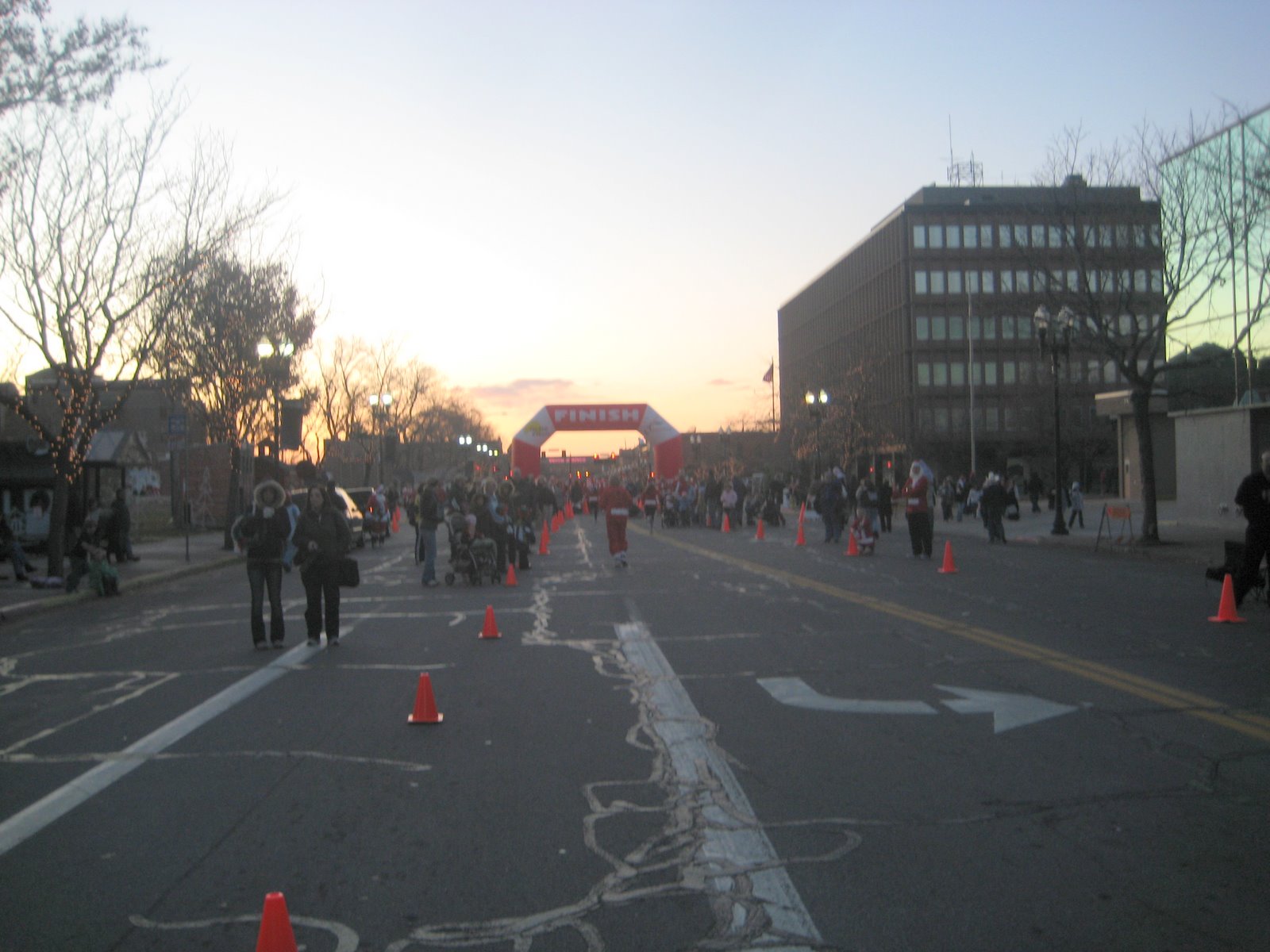 Here we are hanging with the other 297 Santas listening to instructions before the start of the race. The race was held at 4:30 p.m. right before the Holiday Light Parade.